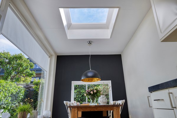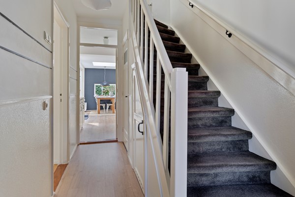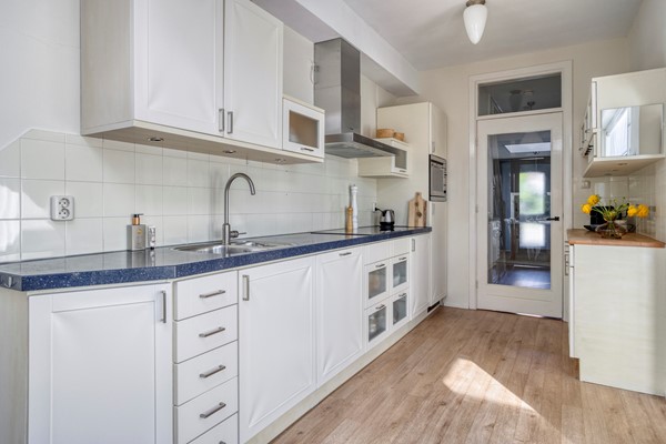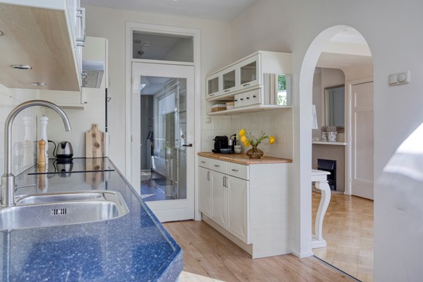 Entree, hal met meterkast en garderobe, gang met trapkast en toilet met fonteintje. Via de hal is er toegang naar de woonkamer en als u rechtdoor loopt komt u in de keuken. De woonkamer heeft een erker aan de voorzijde, mooie parketvloer, open haard en openslaande deuren naar de achtertuin. Vanuit de woonkamer is ook een doorgang naar de keuken. De lichte -door de vele raampartijen en lichtkoepel- woonkeuken is voorzien van diverse (inbouw)apparatuur zoals vaatwasser, oven en inductiekookplaat. Doordat de keuken ooit is uitgebouwd is er nu ook voldoende ruimte om hier een eethoek te creëren.
