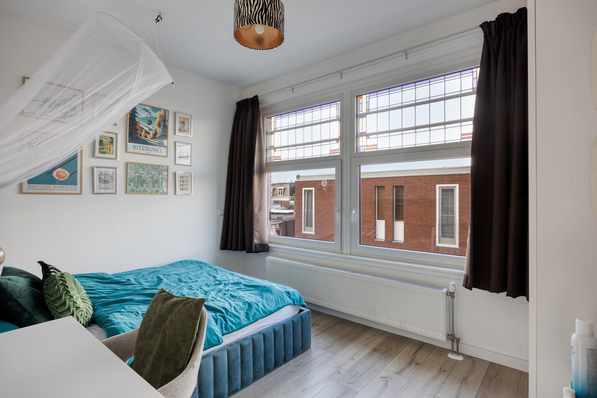 Completely renovated in 2019, modern, bright, move-in ready and spacious 4-room apartment (built in 1932) with characteristic details such as stained glass upper windows and bay window in a highly sought-after part of Scheveningen, including private entrance on the first floor; living/dining room including luxurious L-shaped open kitchen with sit-bar and all conceivable Siemens built-in appliances; rear southeast-facing balcony with storage cupboard, 3 bedrooms; spacious and modern bathroom; separate wall-hung toilet with washbasin; indoor storage/laundry room, low-maintenance plastic frames, fully double glazing and convenient (bicycle) storage on the ground floor.