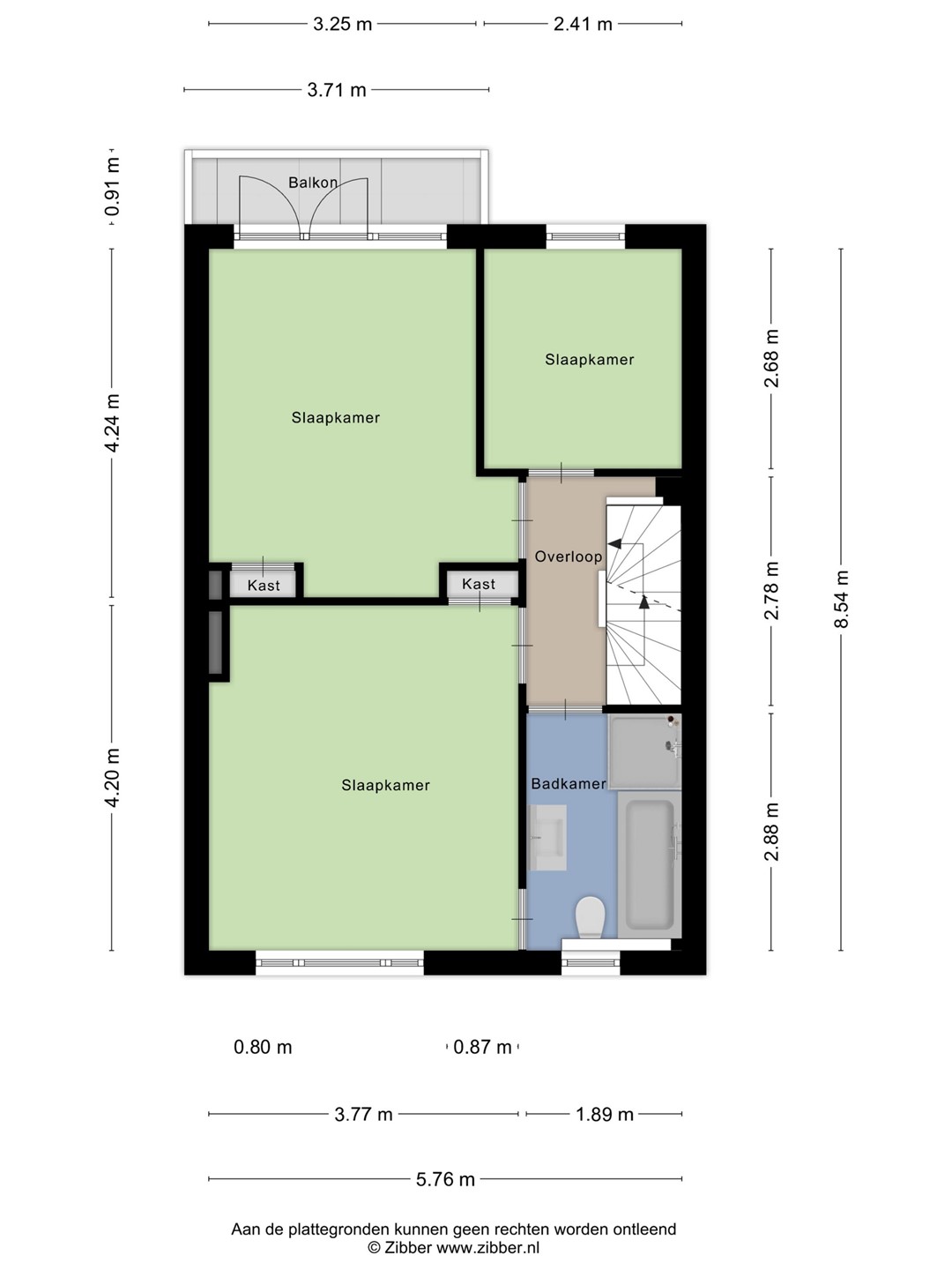 Overloop. Op deze verdieping zijn drie goed formaat slaapkamers. Twee slaapkamers beschikken over een inbouwkast en één slaapkamer aan de achterzijde heeft ook nog openslaande deuren naar het balkon. Verder is er op deze verdieping een badkamer met douche, ligbad, toilet en wastafel met meubel. Grappig detail is de aparte deur naar de kamer aan de voorzijde.