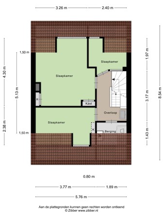 Overloop, hier bevindt zich een handige wastafel, een vaste trap naar de praktische bergvliering en een aparte berging waar de aansluiting voor de wasmachine en droger zit en de opstelplaats van de CV-ketel. Deze verdieping heeft twee prima slaapkamers (de slaapkamer aan de achterzijde heeft twee inbouwkasten) en nog een handige hobby-/werkkamer.